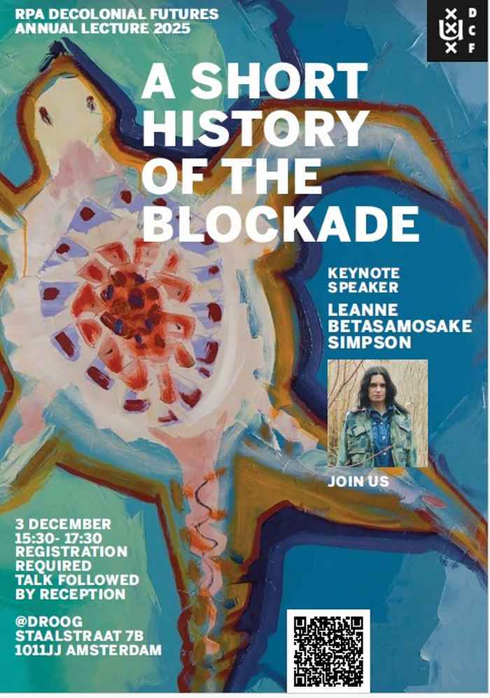 Leanne Betasamosake Simpson will be speaking on "A Short History of the Blockade". The talk will draw from her book of the same name, where Simpson uses Michi Saagiig Nishnaabeg stories, storytelling aesthetics, and practices to explore the generative nature of Indigenous blockades through the future of the beaver- or in Nishnaabemowin, Amik. Moving through genres, shifting through time, amikwag stories become a lens for the life-giving possibilities of dams and the world-building possibilities of blockades, deepening understandings of Indigenous resistance as both a negation and an affirmation.